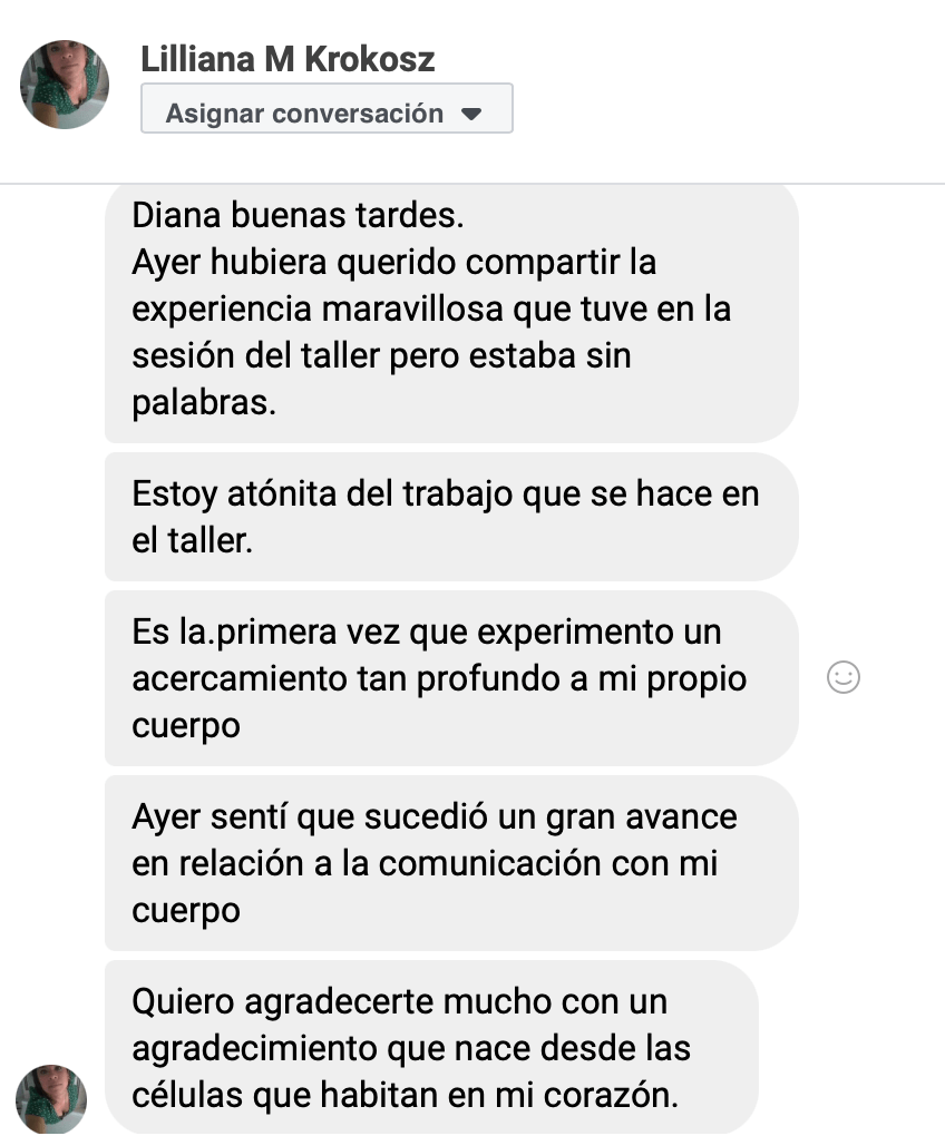 Las sesiones fueron súper deliciosas, lloraba mucho al descubrir la magnificencia de las células y no podía dejar de pensar que nosotros humanos somos las células de este planeta. Saber que el fosfato llegó a la tierra desde el espacio y que ahora compone nuestro ADN ¡fue muy alucinante! Muchas gracias Diana