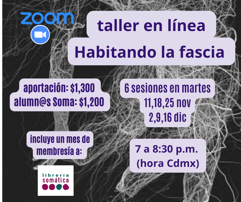 Aportación: $1,300 (en una sola exhibición) $1,200 alumn@s que ha tomado previamente talleres con Soma. Incluye el acceso a las sesiones en directo y a las grabaciones (disponibles hasta el 16 de enero)